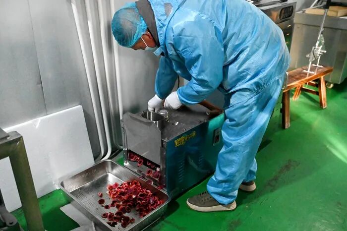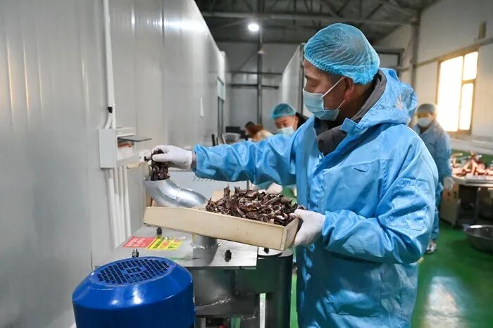 近日,山西省阳泉市盂县的山西益林农业开发股份有限公司(以下简称“山西益林农业公司”)鹿茸加工车间内,机器轰鸣、人影攒动,一派热火朝天的备货景象。工人们身着统一工装,在各自岗位上有条不紊地忙碌,经过排血、清洗、切片、烘干、磨粉等多道精细工序,一件件高品质鹿茸系列产品新鲜出炉。