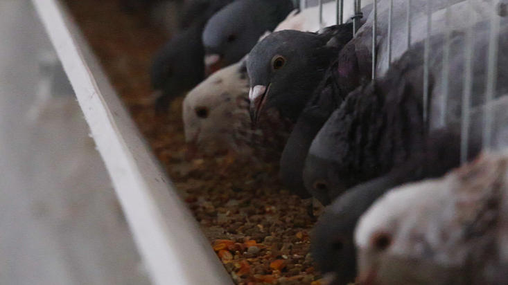 “鸽子长成全羽鸽子,羽毛全部长出来以后,鸽子腹部胸肌大概有四指到五指的宽度,体重在0.5到0.7公斤,鸽子就达到了出栏标准。”工作人员马永涛介绍说。