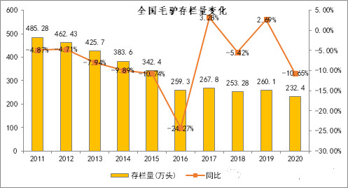 ?、?ldquo;双替代”仍将持续,一是役用功能被机械替代;二是驴养殖集中区域,小型驴会被大中型驴替代,使得总体存栏量小幅波动。②近2年部分规模养殖场优胜劣汰,数量减少,母驴被淘汰,群体数量逐渐减少。