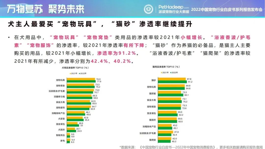 1、人宠互动用品的渗透率持续上升,宠物生活用品有所回落,犬主人更加注重规范养犬。