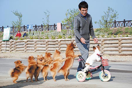 6只狗表演搭肩接龙赚车马费(图文)