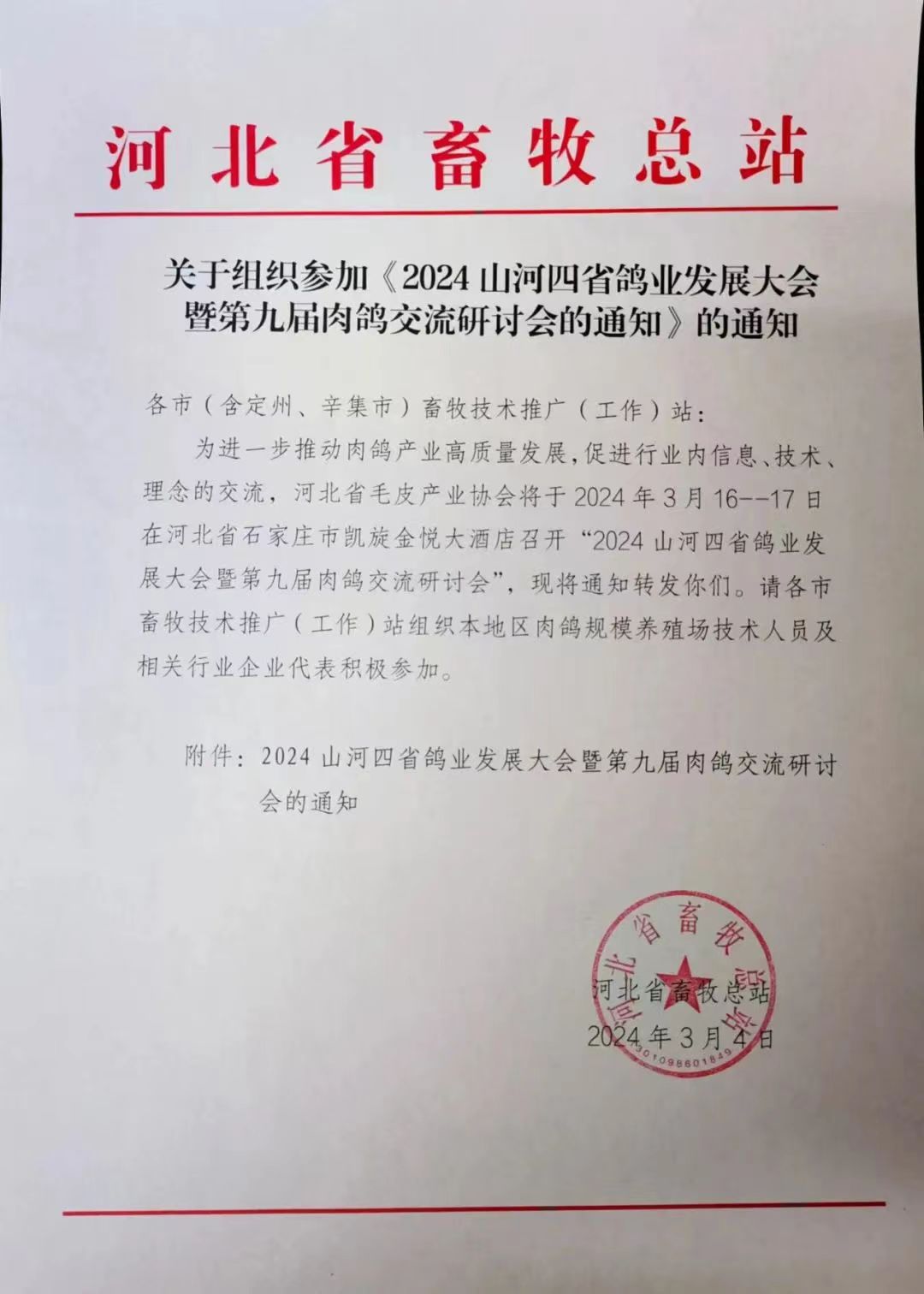 关于举办2024山河四省鸽业发展大会暨第九届肉鸽交流研讨会的通知