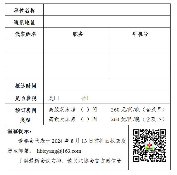 1、参会代表填写回执,于2024年8月13日之前传至组委会。