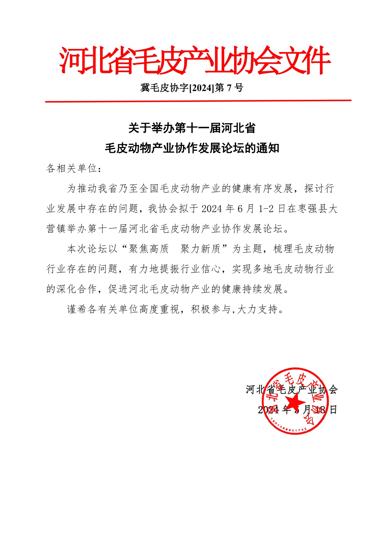 关于举办第十一届河北省毛皮动物产业协作发展论坛的通知