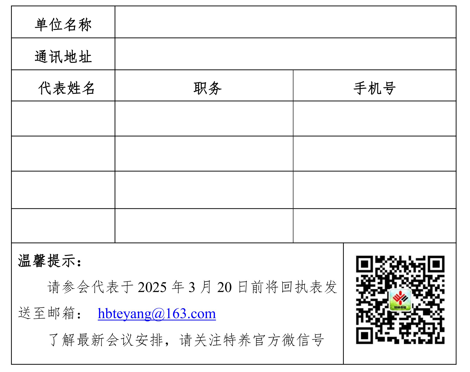 1、参会代表填写回执,于2025年3月20日之前传至组委会。