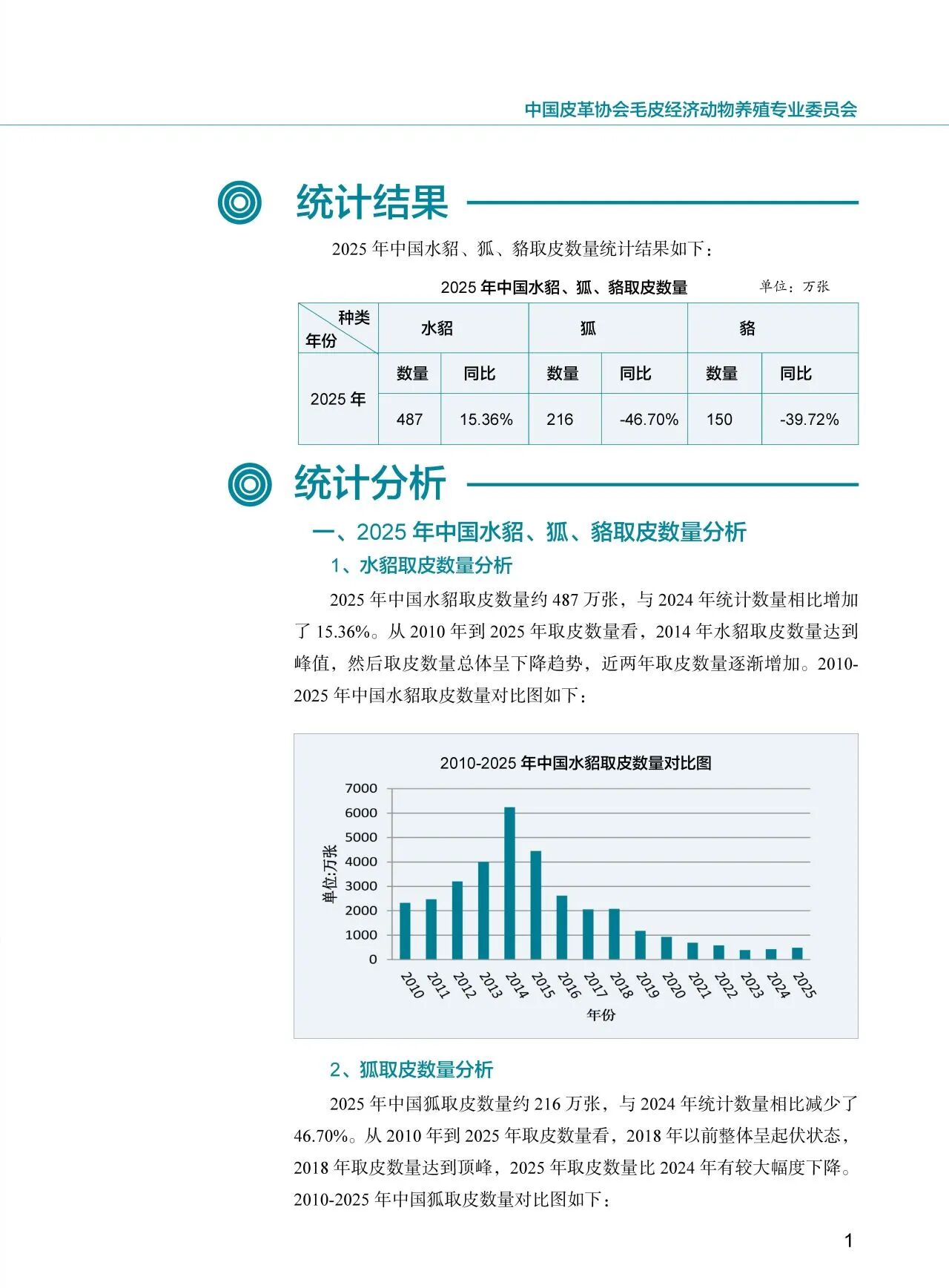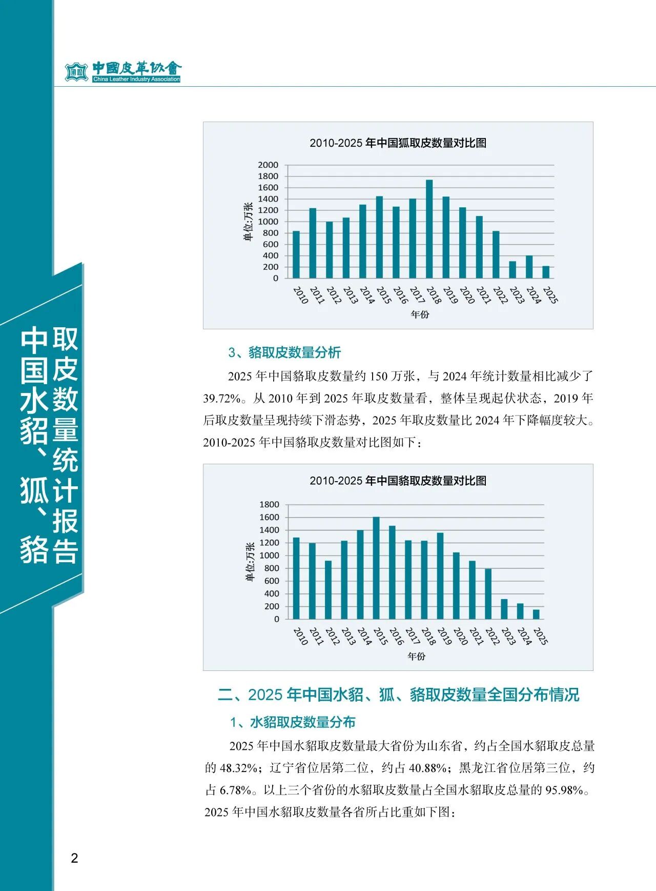 2025年中国水貂、狐、貉取皮数量统计报告