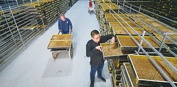 近日,山东省德州市陵城区边临镇德馨党建联合体的黄粉虫烘干车间内,一派繁忙。经过约40分钟的烘干处理,一只只金黄饱满的黄粉虫陆续“走下”生产线,静待包装后出口