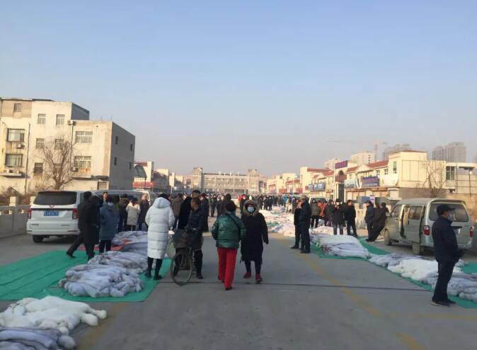 今天农历的腊月初四,尚村毛皮市场大集。进入腊月也到了冬天最冷的时候,这集相比上个集来的人要多一些,皮张上市量也有所增加。不过外地客商过来的不多,交易量不大。