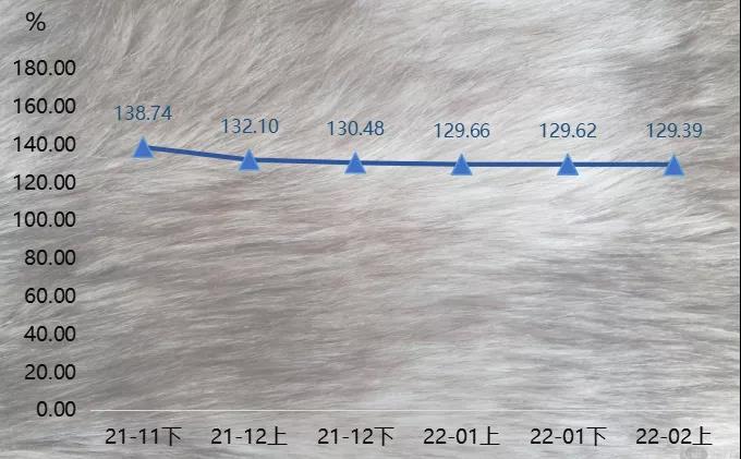 2022年2月上半月,由于春节假期影响,裘皮市场交易时间减少。数据显示,裘皮产品价格指数稳中略跌,具体指数运行情况如图所示: