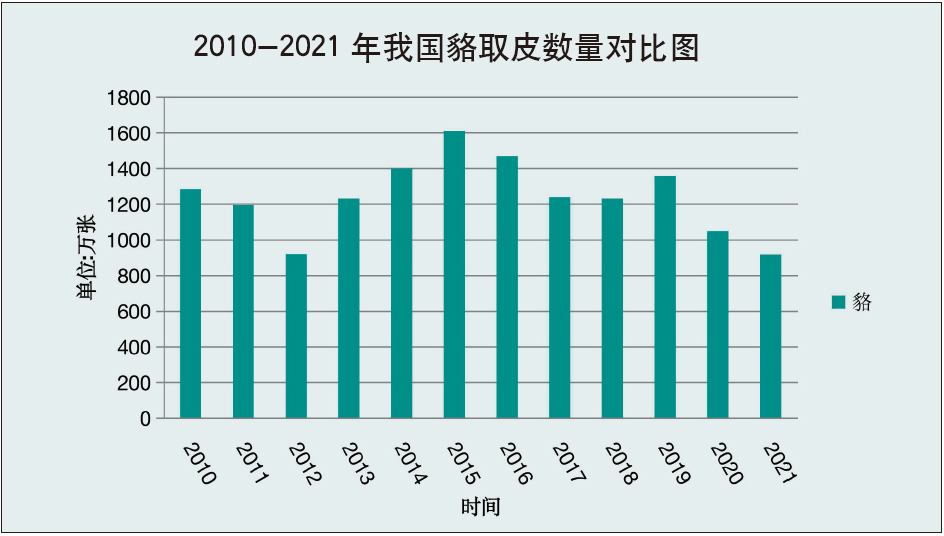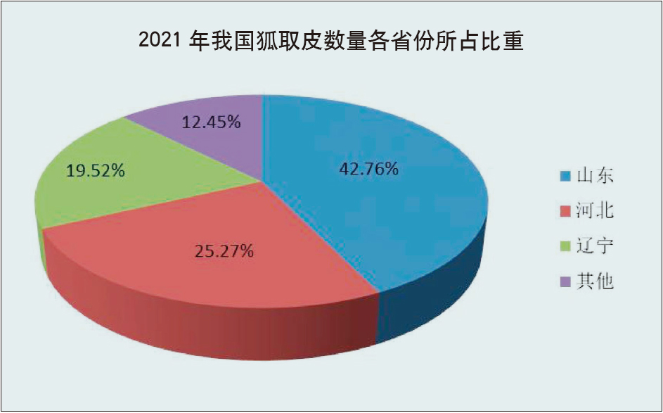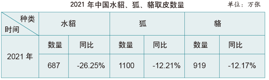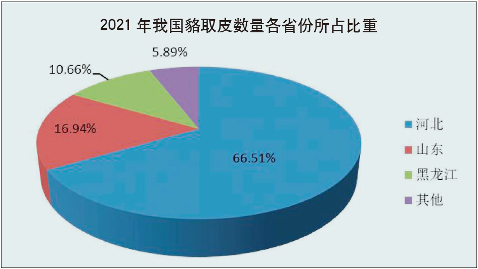(一)2021年中国水貂、狐、貉取皮数量分析