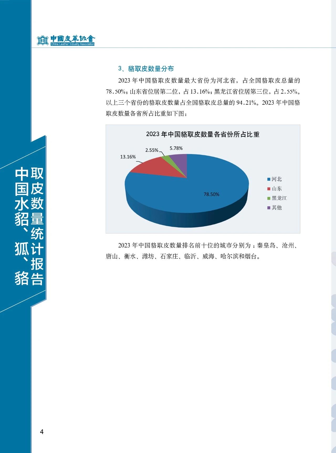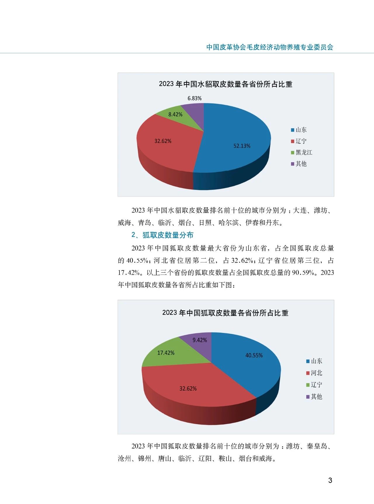 中国水貂、狐、貉取皮数量统计报告(2023年)