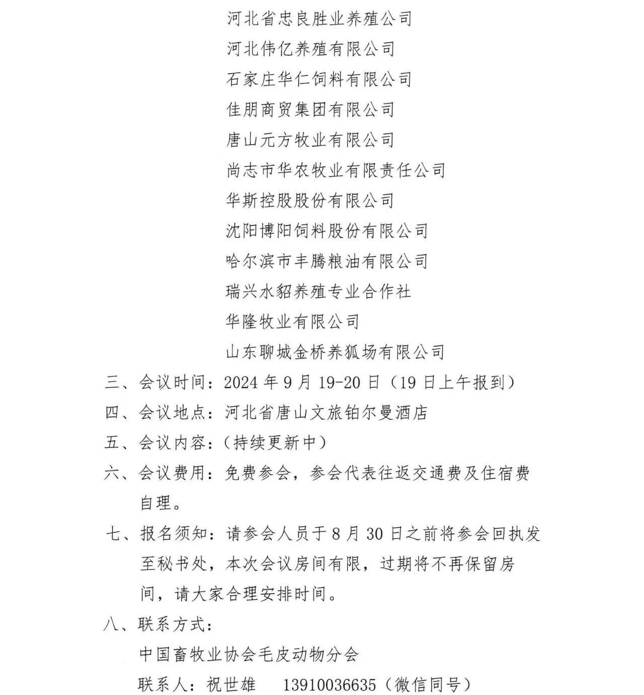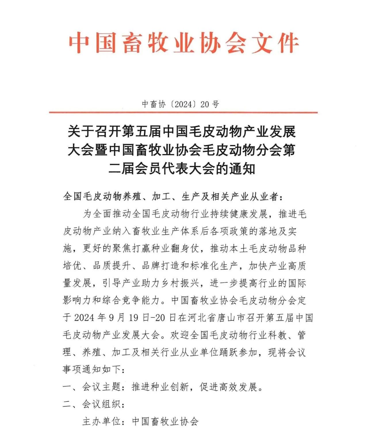 关于召开第五届中国毛皮动物产业发展大会暨中国畜牧业协会毛皮动物分会第二届会员代表大会的通知
