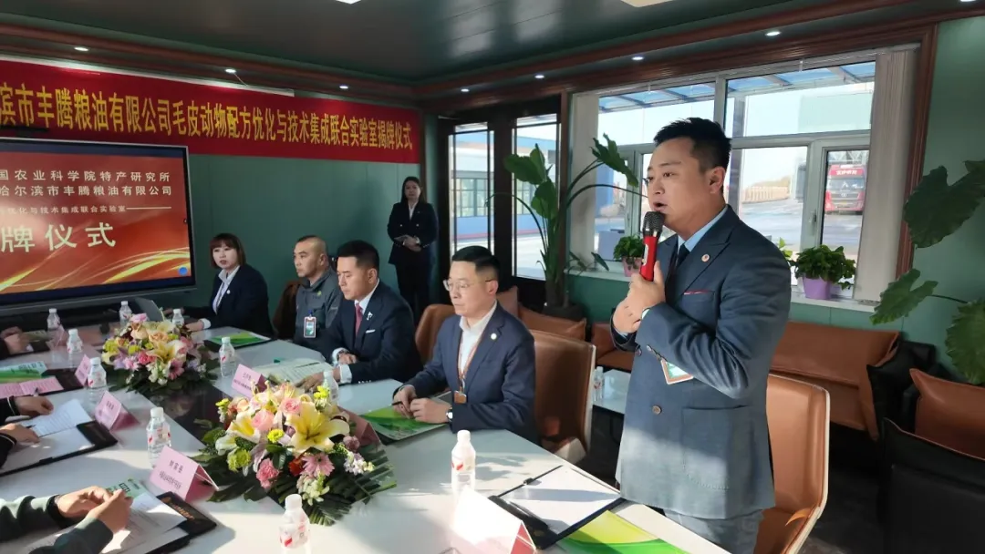 曲园园在致辞中表示,丰腾粮油作为深耕特种养殖饲料领域的标杆企业,与中国农科院特产所携手共建联合实验室,是企业践行科技兴农使命、深化产学研合作的关键举措。丰腾粮油将全力投入资源支持实验室运营,与科研团队协同攻关,为特种养殖产业升级贡献力量。