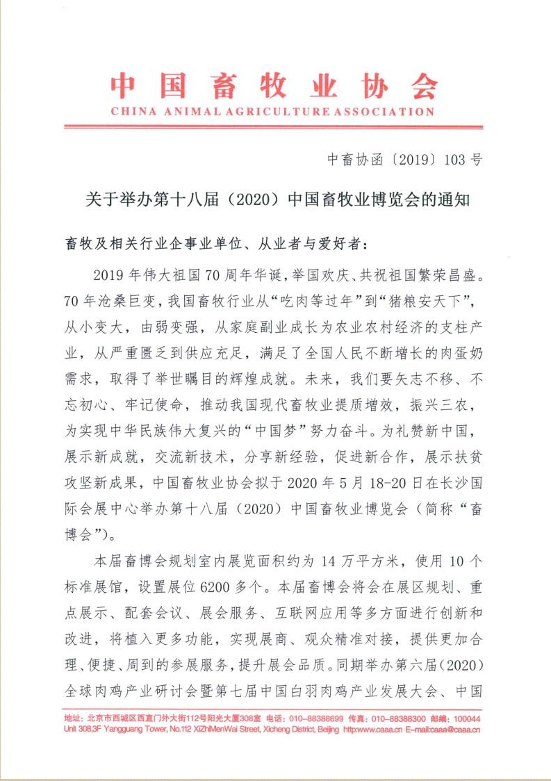 关于举办第十八届(2020)中国畜牧业博览会的通知