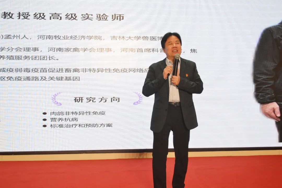 在专题讲座环节,河南牧业经济学院教授郭良兴就《提升非特异免疫 健康养殖肉种鸽》题目进行分享,为与会者提供了宝贵的知识和启示。