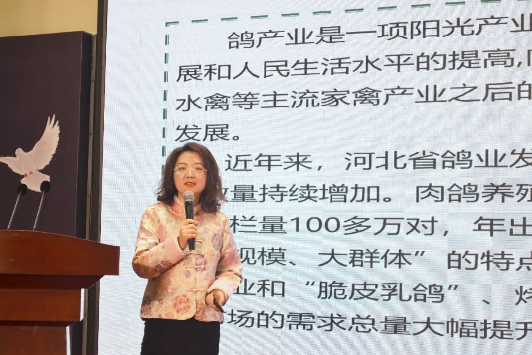 河北农业大学经济管理学院教授李逸波以《河北省肉鸽产业形势分析》为题,重点从河北鸽业总体情况、肉鸽市场价格、肉鸽养殖成本收益、鸽产业发展优势、鸽产业发展问题及对策、鸽产业未来发展展望六方面给参会者进行分享。