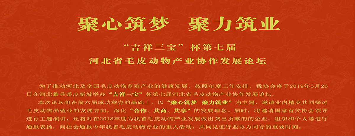 关于举办“吉祥三宝”杯第七届河北省毛皮 动物产业协作发展论坛的通知 一、会议组织 指导单位:中国皮革协会 中国畜产品流通协会 主办单位:河