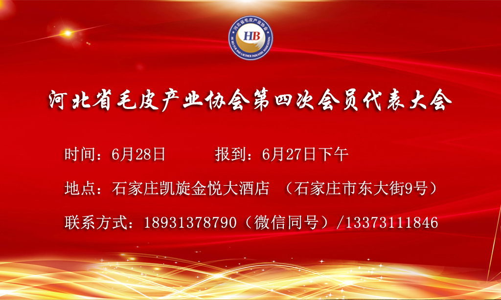 2019年6月28日,河北省毛皮产业协会第四次会员代表大会暨第四届理事会第一次会议在河北石家庄市凯旋金悦酒店隆重举行。在本次会议上河北省毛皮产业协会产生了新一届理事