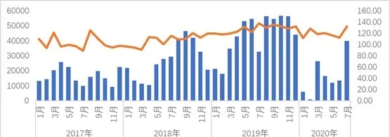 7月份,种鸽企业青年鸽的销量大幅增长,环比增加约2倍,同比增加22%。从季节性看,三季度普遍存在种鸽销量增长的情况。价格方面,种鸽平均售价达到132元/对,环比上涨16.8%,并接近去年同期水平。总体判断,三季度种鸽的市场已经恢复到新冠肺炎疫情以前的水平。从结构上看,此次种鸽销量增长为普遍现象。价格上,最低价为每对54元,最高为210元。