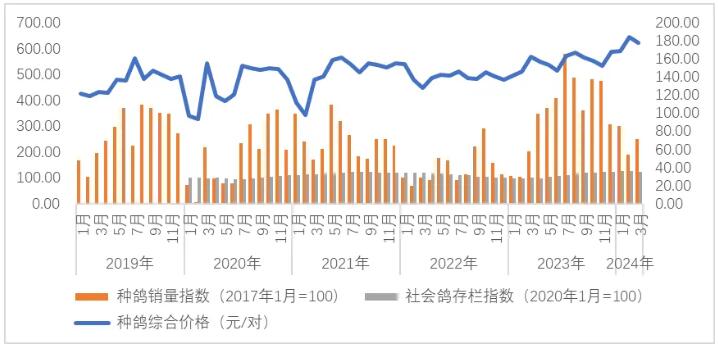 注:社会鸽存栏指数是派生指标,用来反映社会面存栏情况,该指标尚在构建完善当中。