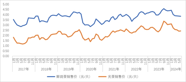 本期,鸽蛋价格3.86元/枚左右,光蛋价格则为2.43元/枚,环比持平。从结构上看,本期鸽蛋价格企稳为主,但降幅收窄,进入季节性上调阶段。