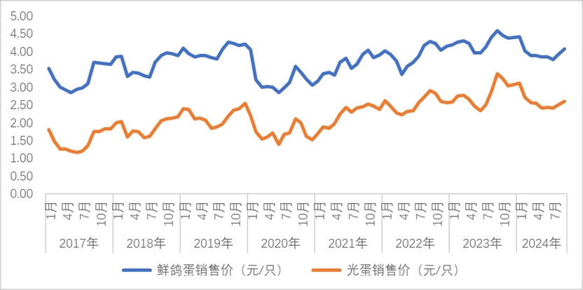 本期,鸽蛋价格4.08元/枚左右,光蛋价格则为2.6元/枚,环比上涨3%-4%,为一般性波动。从结构上看,本期鸽蛋价格稳中有升,未出现蛋价下跌的情况,价格处在季节性上涨阶段,符合预期。
