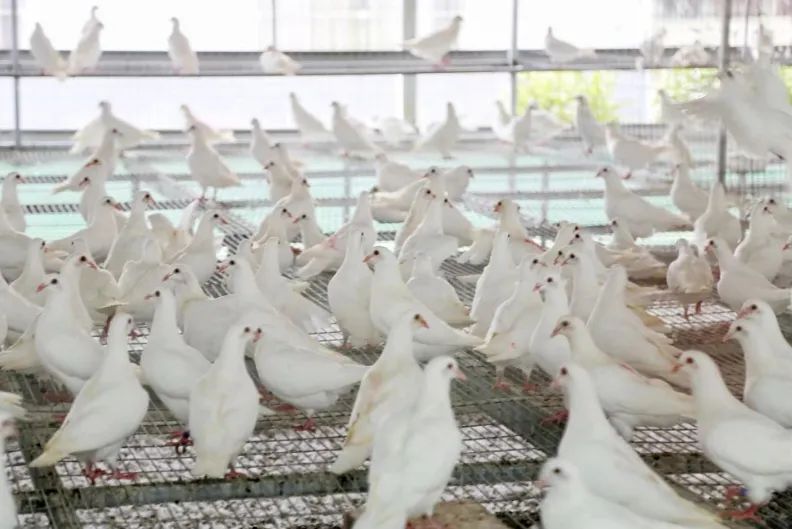 行至蛋鸽生产区,王建伟语气中透着自豪:“这里全是DNA鉴定的双母蛋鸽,准确率达99%,富硒鸽蛋就从这里诞生,搭乘冷链发往京沪浙苏。整个基地严格实行五谷原粮喂养,所产‘伍谷鸽蛋’‘富硒乳鸽’经认证达到国家标准,成为畅销的绿色产品。”