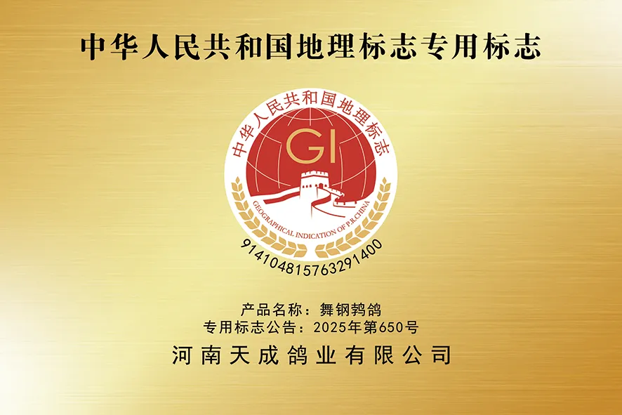近日,国家知识产权局发布公告。河南天成鸽业有限公司(北方鸽业联席会首批发起单位)“舞钢鹁鸽”入选国家地理标志保护产品目录。