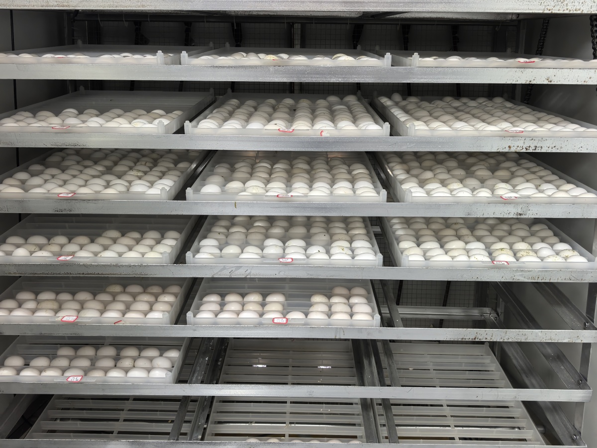 走进愚公鸽帮的孵化车间,三台全自动鸽子孵化机整齐排列,恒温恒湿的环境里,鸽子蛋静静孕育着新生命,部分已破壳的鸽仔发出清脆叫声。“鸽子蛋在这里孵化18天就能破壳,工作人员会根据生产日期,把鸽仔送到对应的种鸽妈妈身边喂养。”赵九高介绍道。
