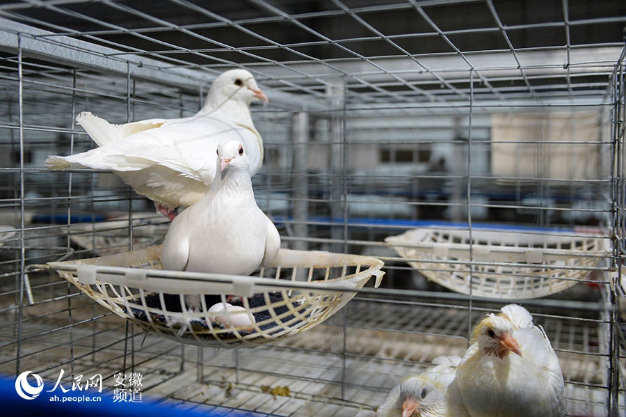 人民网安庆11月27日电(记者苗子健)11月25日,望江县凉泉乡团山村徐上组标准化鸽舍内,村民徐训桃按下按钮,自动喂料机沿着轨道缓缓移动,鸽子从鸽笼里探出脑袋啄食料槽里的玉米