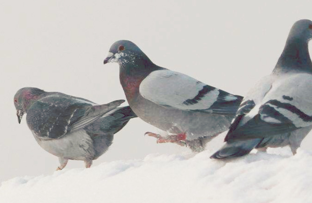 在寒冷的鸽舍里,鸽往往缩成一团,通过分解体内脂肪产生大量热能抵御寒冷,或者加大采食量进行自我调节。