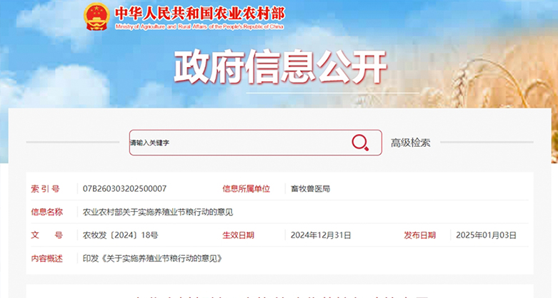 农业农村部关于实施养殖业节粮行动的意见 2025年1月3日,农业农村部发布《农业农村部关于实施养殖业节粮行动的意见》,全文如下?! 「魇 ⒆灾吻?、直辖市及计划单列市