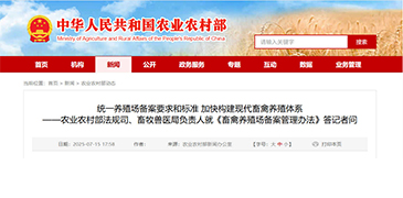 2025年7月11日,农业农村部部长韩俊签发2025年第2号农业农村部令,公布了《畜禽养殖场备案管理办法》(以下简称《办法》),将于2025年9月1日起实施。农业农村部法规司、畜牧兽