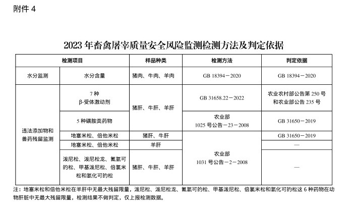 4. 2023年畜禽屠宰质量安全风险监测检测方法及判定依据