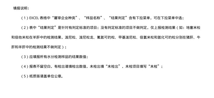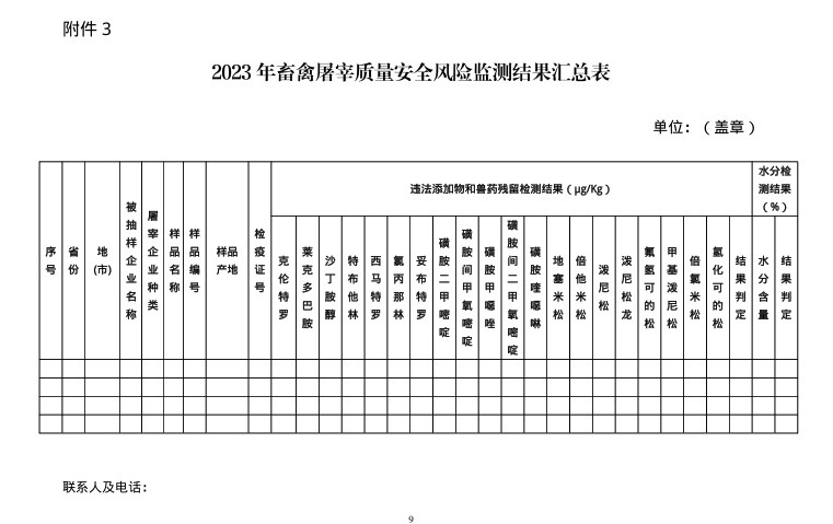 屠宰技术中心负责部级监测和省级监测数据的汇总与分析工作。部级监测承检机构和省级农业农村主管部门分别于6月25日、12月25日前将上半年、全年监测结果汇总表(附件3)和监测结果分析报告加盖公章后报屠宰技术中心。