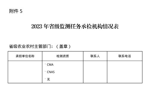 (一)省级农业农村部门按照本计划要求制定辖区畜禽屠宰质量安全风险监测方案,报我部备案并组织实施。监测方案、承检机构情况表(附件5)和省级监测工作具体负责人信息于3月20日前报屠宰技术中心。