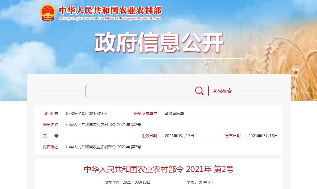 中华人民共和国农业农村部令 2021年 第2号 《兽用生物制品经营管理办法》已经农业农村部2021年3月2日第3次常务会议审议通过,现予发布,自2021年5月15日起施行?! 〔砍?/p>