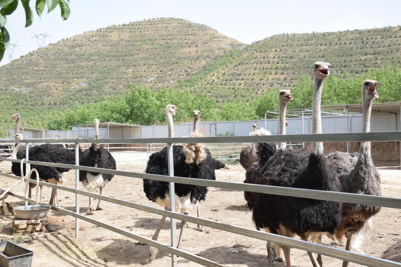 沿着蜿蜒的村道继续前行,不远处开阔场地上跃动的高大身影吸引了众人的目光。原来这里是南高壁村的鸵丰有限公司,是一家以鸵鸟产业为核心,有4年养殖经验的企业,凭借50多只鸵鸟的养殖规模,走出了一条特色养殖模式,为乡村经济注入新活力。