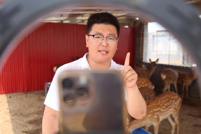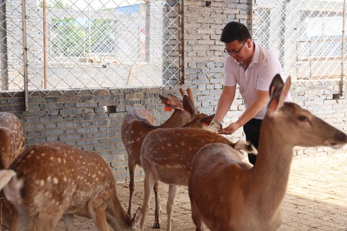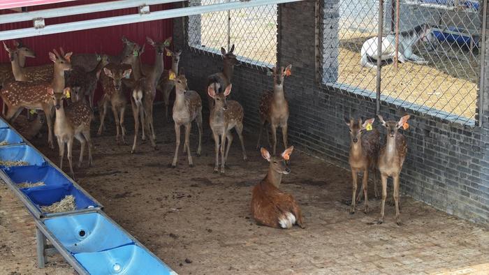 养殖户查看梅花鹿身体情况?;粕忌忌?/span>
