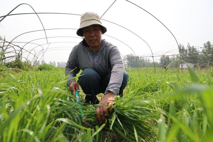 养殖户割草为蚂蚱准备青草饲料?;粕忌忌?/span>