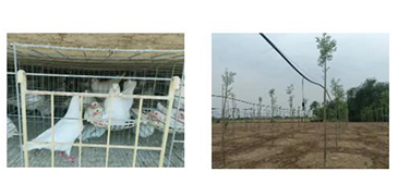 近日,在山东省滨州市英才新五村的肉鸽养殖基地周边,滨城区第七批派驻滨北街道第一书记武洲和项目负责人申云霞正在发芽状况好的旱柳周边插种着刚刚新进的金蝉卵枝。这是充