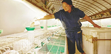 炎炎夏日,酷暑难耐。来到太行山下的河南省沁阳市西向镇西向四街村泽丰养殖专业合作社的兔舍里,却顿感凉风习习。饲养员靳小利在一排排兔笼间穿梭,给兔子投喂食材。饲养员靳