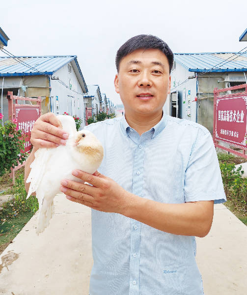 楚维向:天明鸽业目前存栏高产种鸽10万对,年出栏乳鸽180万只,年产鸽蛋500万枚,养殖规模位居全国前列。