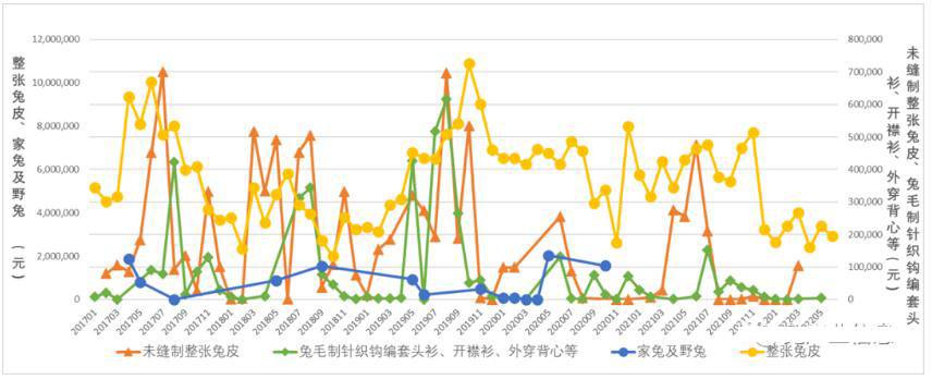图6 2017年1月-2022年6月其他兔产品出口额走势
