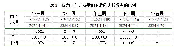 根据4月份集散地的监测结果得知,商户总体对未来市场持中立态度。具体来说,在4月份的五周中,商户大多认为销售情况会基本持平,表明了其对市场未来走势的中立态度(见表2)。
