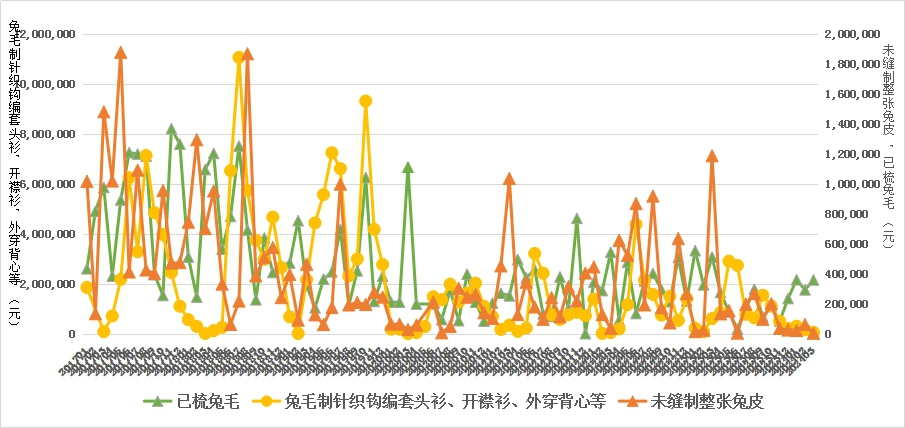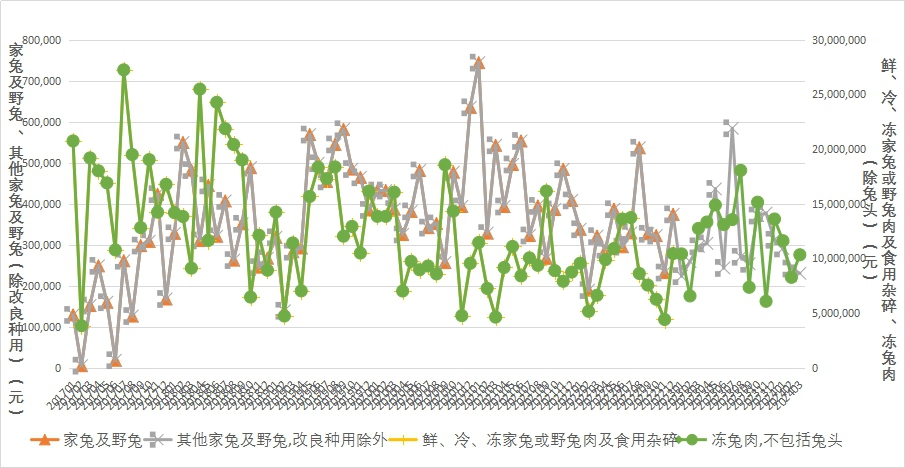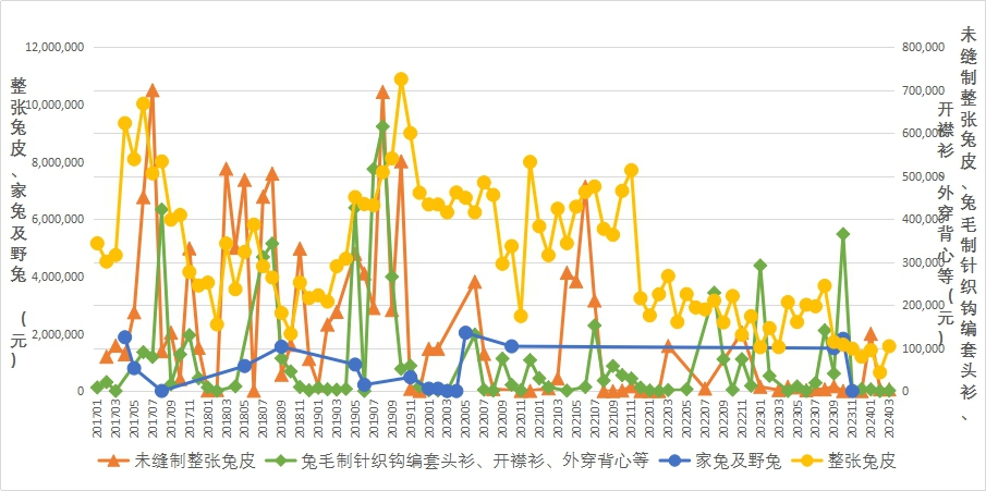 图6 2017年1月-2024年3月其他兔产品出口额走势