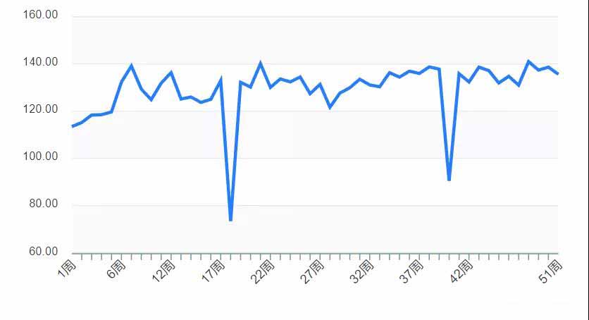 最近一周兔产业表现为135,与上周相比下降3.3%