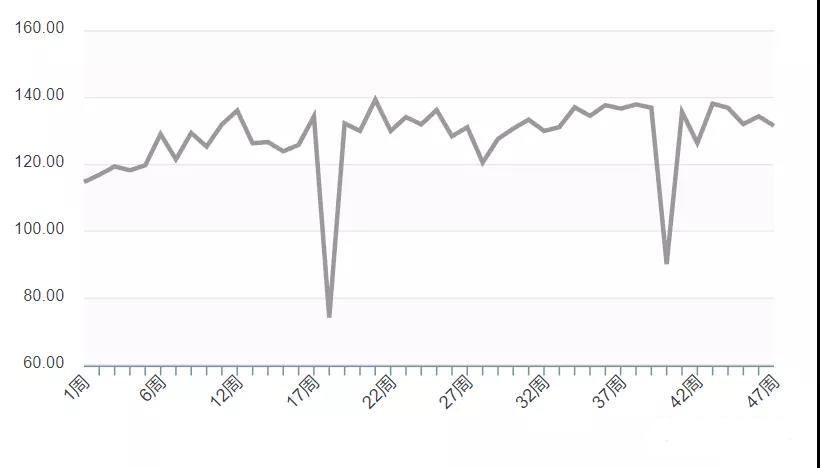 最近一周兔产业表现为131.59,与上周相比下降2.12%