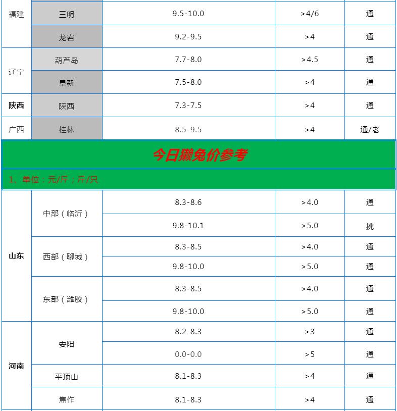 全国各地兔价行情信息快报?。?022.5.30)