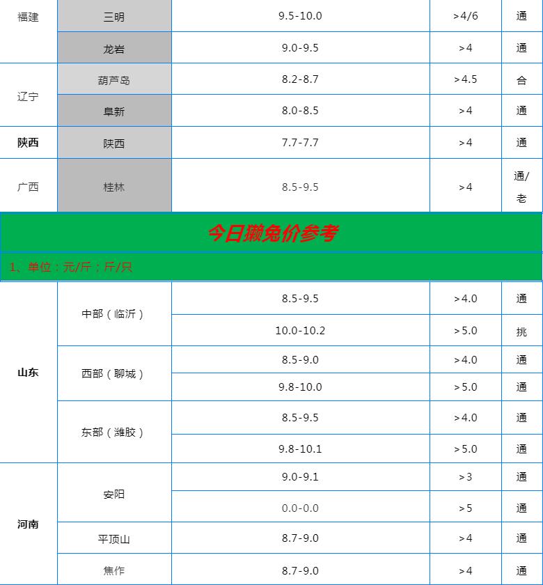 全国各地兔价行情信息快报?。?022.6.22)